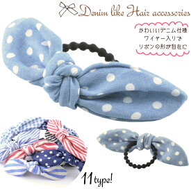 メール便対応 ヘアゴム デニムライク チェック柄 リボン ヘアアクセサリー ワイヤー入り 7種類 レディース ヘアーゴム アクセサリー ヘアポニー ヘアーアクセサリー コレクション ガールズ系 渋谷系 109系 原宿系 Hair Acc 68